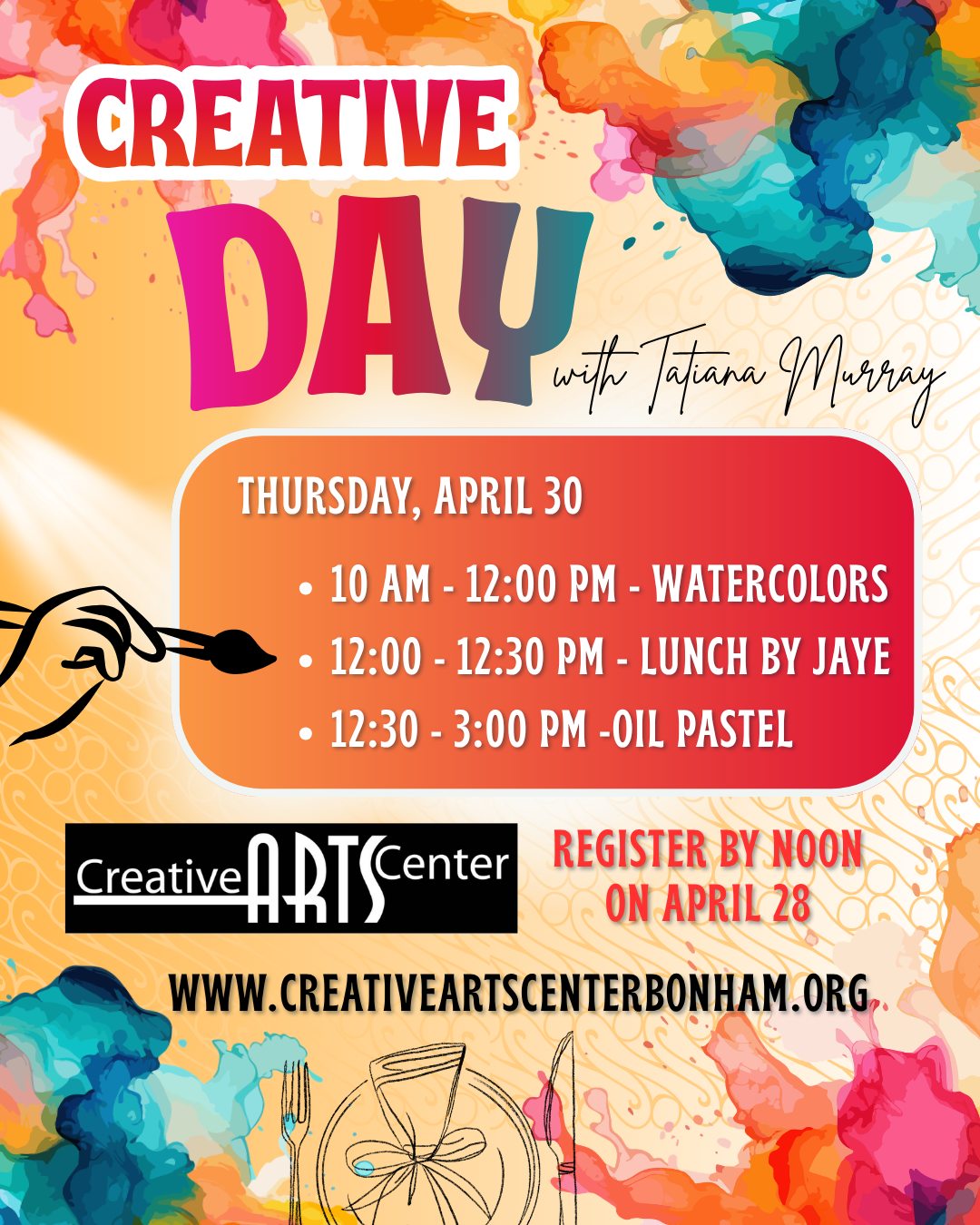 • $80 – All day – includes, watercolors, lunch and oil pastels